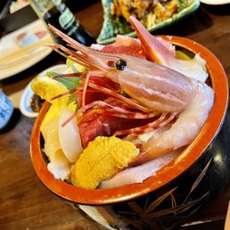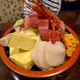 Our go to spot for sushi in the neighborhood. It's very dependable and has a variety in the menu. We've tried the chirashi and chirashi deluxe, both are packed with large slices of fish and are fresh. The kitchen items are well done and come in a hefty portion for takeout. The chicken teriyaki is on the saucy side.